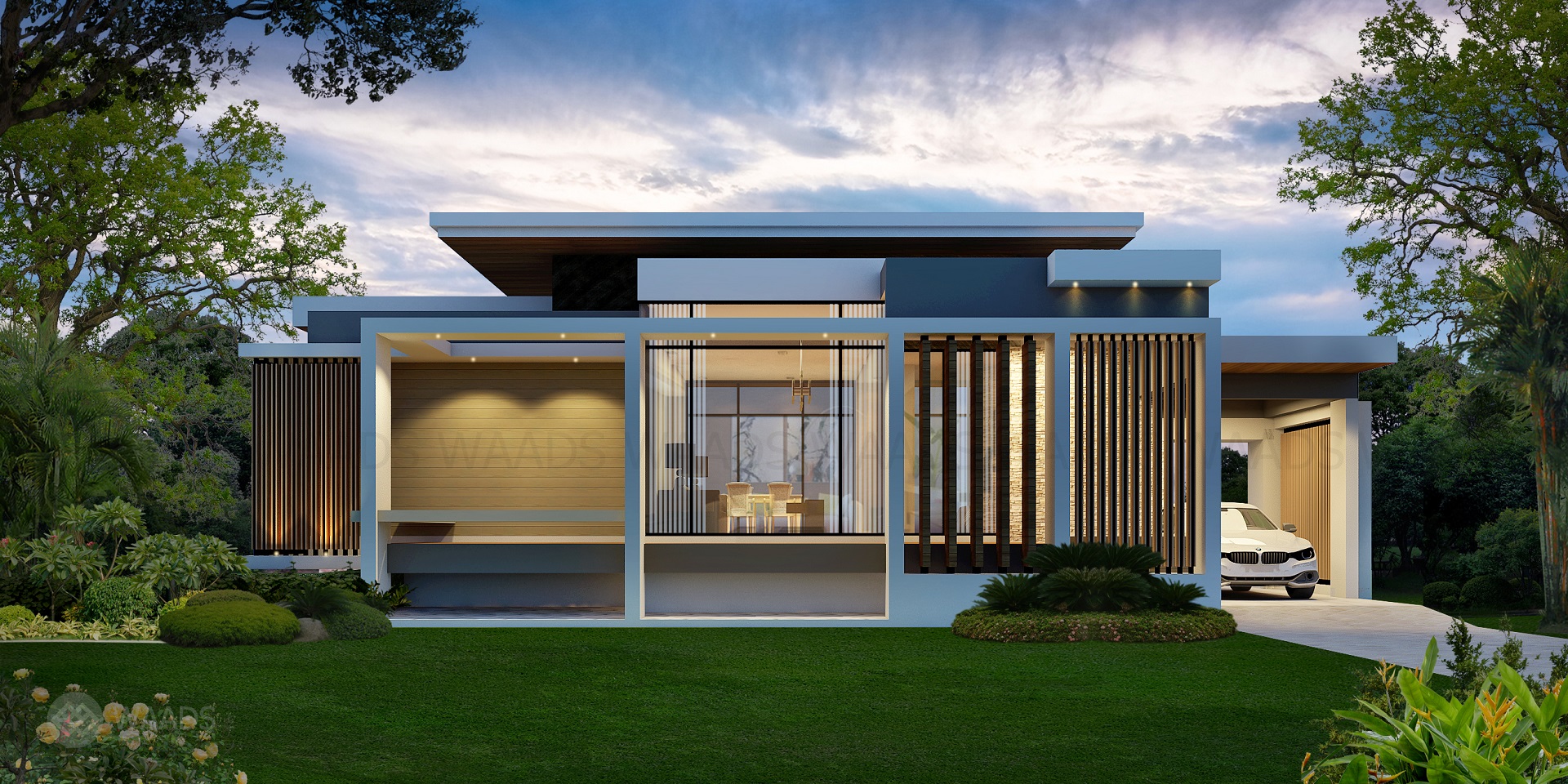 BUILDING AREA 1,329 SQ.M.MINIMUM LAND AREA FOR BUILDING W.32M X L.46M5 BEDROOM + 7 TOILET– LIVING ROOM – DINING ROOM– PANTRY KITCHEN THAI KITCHEN – MAID– WORKING ROOM– SWIMMING POOL– FITNESS – GARAGE 3 CARS